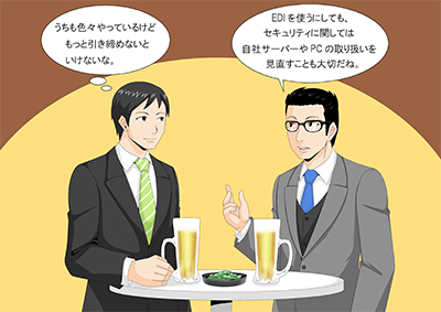「しかし、情報のデジタル化で商取引の流れを見える化することはいいんだが、今度はデジタル化に伴うデータの漏えいということが、ますます心配になるよな。そのあたりのセキュリティはどう考えればいいんだろうか」